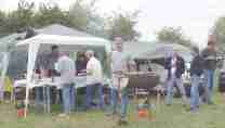 | Bij terugkomst op de camping stond de barbecue al